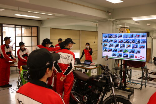12日(月)、一級自動車整備科・自動車整備科1年生と国際自動車整備科2年生を対象に、株式会社ルーニー様、株式会社八尾カワサキ様、株式会社京都モータークラブ様にご来校いただき企業連携授業を実施していただきました🏍
