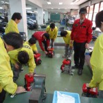本日、滋賀の県立高等学校より2年生の生徒の皆さんが自動車整備科の学校見学にお越しくださいました。とても短い時間でしたが、自動車整備科の教員より富士重工業社製の発電用ロビンエンジンを教材にラチェットなどの工具を使い分解組み付けをしながらバッテリー無しでガソリンエンジンのプラグに点火する機構や、エンジンの構造など自動車整備科で学ぶことを体験していただきました。見学を通じてこれからの進路を決める一助になればとても嬉しいかぎりです。
