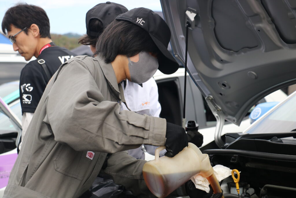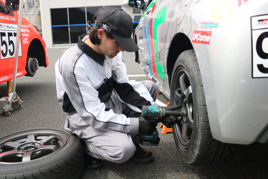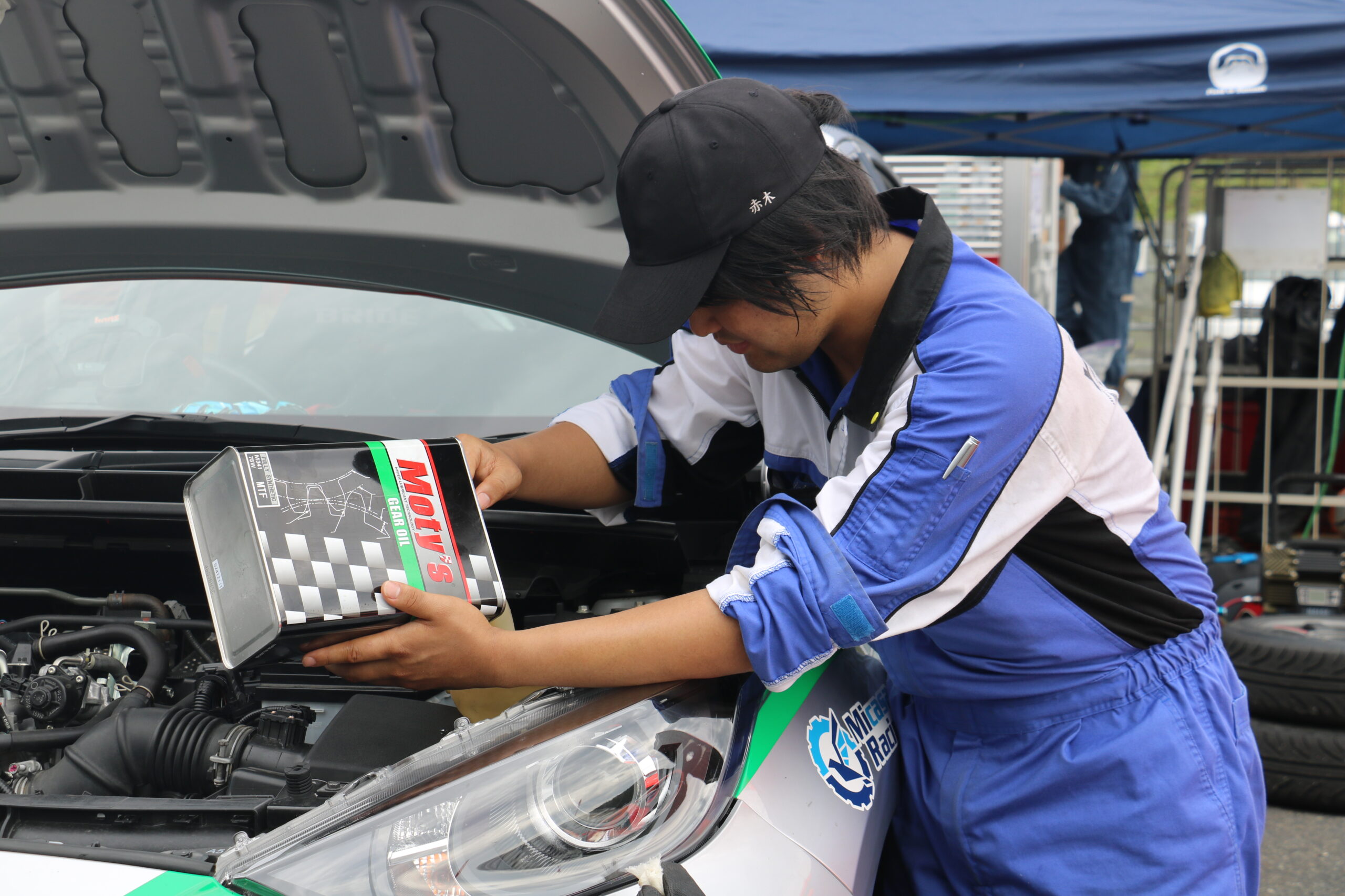 学生メカニックたちは、車両点検やタイヤやオイル交換・燃料補給などを担当