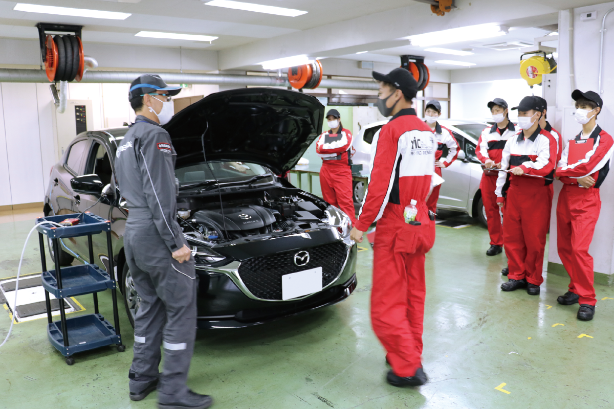 現役エンジニアの方や本校OBにお越しいただき、マツダのエッセンスである「走る歓び」についてお話しいただきました。また「スカイアクティブテクノロジー」「魂動」「人馬一体」をキーワードに、安心、安全、快適なドライブにこだわる車づくりへの思いも学びました。ロータリーエンジンの歴史もご紹介いただき、マツダエンジニアの情熱を感じた講習でした。